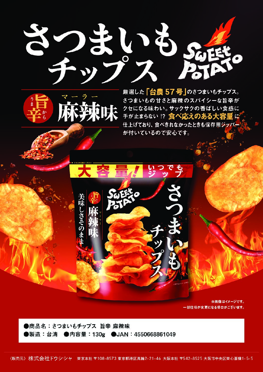 新発売!さつまいもの甘み×花椒と唐辛子の本格麻辣チップス